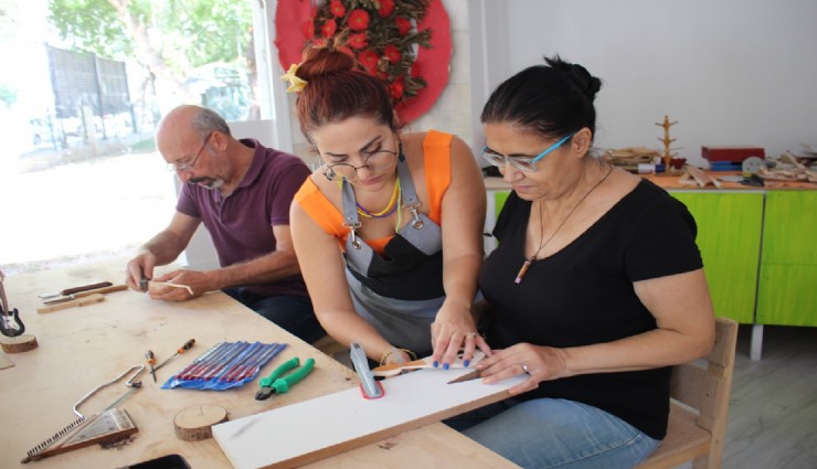 Geri dönüşüm malzemeleri kullanılarak minyatür müzik aletlerinin yapıldığı kurslarda katılımcılar sosyalleşme imkânı bulurken, yeniden kullanım ve geri dönüşüm kültürleri de pekiştiriliyor.