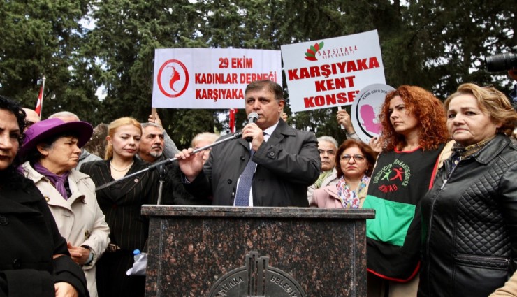 Basın açıklamasında konuşan Karşıyaka Belediye Başkanı Dr. Cemil Tugay şunları kaydetti: “Bugün burada masum çocuklar, kadınlar, Türkiye Cumhuriyeti’nin insan hakları konusundaki duruşunu Karşıyaka ve İzmir duruşuyla burada göstermek için geldiniz. Hepinize çok teşekkür ederim. Yaşadığımız olay maalesef ülkemizin tarihine kara bir leke olarak geçecek. Hepimiz bu konu her geçtiğinde, bu durumu her hatırladığımızda maalesef şu anda hissettiğimiz gibi büyük bir üzüntü ve vicdan azabı ile hatırlayacağız bu olayı. Bugün burada sorumlularına seslenmek için bir aradayız. Bireysel olarak işlenen suçlar için değil, toplumu değer yargılarıyla korumak, masum insanları korumak, görevini yerine getirmesi gereken, devleti yöneten siyasetçileri uyarmak için buradayız. Türkiye Cumhuriyeti çocukların istismar edildiği, kadınların taciz edildiği bir ülke olamaz. Bu ülkeyi kuran insanlar ülkemizi düşman işgalinden kurtarırken demokratik, laik Cumhuriyeti kurarken ve bize onu emanet ederken elbette ki bunların yaşandığı bir ülke olarak kurmadılar. Burayı, bize bunun için emanet etmediler. Sesi olamayanların sesi, kimsesi olmayanların kimsesi olmak için kuruldu Türkiye Cumhuriyeti. O inançla kuruldu. Kendi insanına, halkına, çocuğuna, kadınına duyduğu saygıyla beraber kuruldu. Bugün yaşanan bu olay birilerinin o kutsal ruha ettiği ihanetin göstergesi durumunda.”