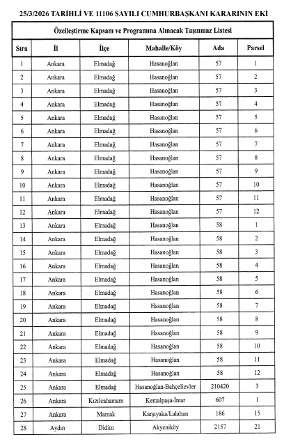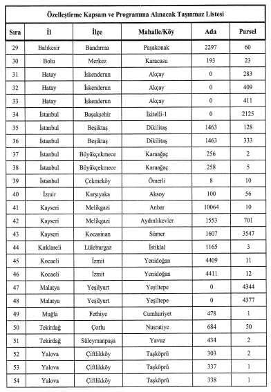 Özelleştirilme kapsamına alınacak bölgeler ise şöyle,