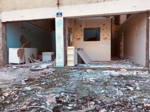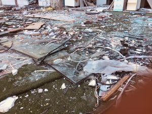 Zeminde cam ve beton kırıklarıyla çevrili binanın bu görünümü, vatandaşı korkutuyor.