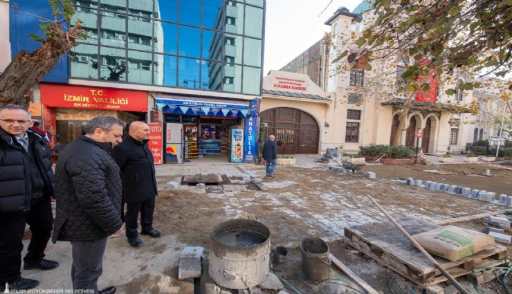 İzmir Büyükşehir Belediyesi Fen İşleri Dairesi Başkanlığı tarafından yürütülen çalışmalar kapsamında, Kemeraltı’nın Konak Meydanı’na açılan ve ana girişi olarak kabul edilen Anafartalar Caddesi ile Milli Kütüphane Caddesi’nin tamamlanan altyapı çalışmalarının ardından üstyapı çalışmalarına geçildi.