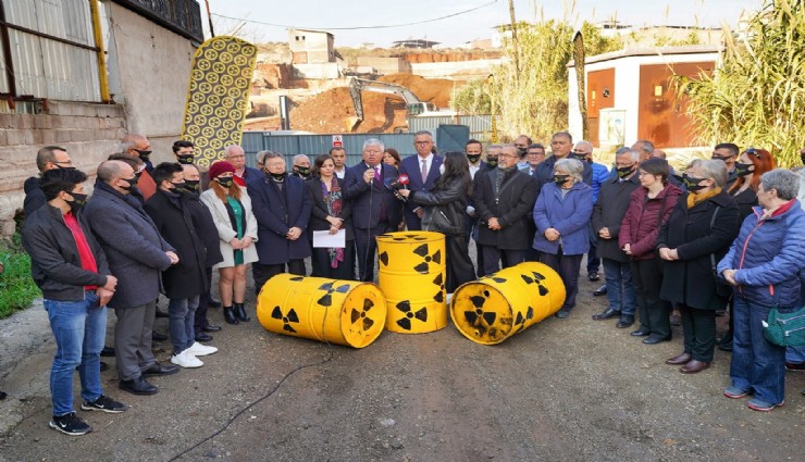 “Valiliğimizin almış olduğu ve duyurduğu alanın nükleer atıklardan temizleneceği haberi sevindiricidir, geç kalınmış ama doğru bir iştir. Teşekkür ederiz” ifadeleriyle konuşmasına başlayan İzmir Büyükşehir Belediyesi Başkan Vekili Mustafa Özuslu, “Halil başkanımın da söylediği gibi sürecin takipçisi olacağız. Şehrin göbeğindeki bu alanda toprağa gömülü nükleer atıkların insan sağlığını nasıl tehdit ettiğini bilim insanları dile getiriyor. Üretmeliyiz, ancak insana rağmen, insan hayatını tehlikeye atarak üretim olmaz. Çevreyi, ekolojiyi yok ederek üretmek olmaz. Aslında çevreyi ve insan sağlığını tüketmektir. Çevreci, sürdürülebilir, insan sağlığına dikkat eden üretimi destekliyoruz. Burada toprağa gömülen nükleer atıklarda olduğu gibi bir üretim sürecini asla tasvip etmiyoruz ve buranın temizlenmesi için İzmir Büyükşehir Belediyesi olarak ne gerekiyorsa yapacağız, süreci takip edeceğiz” ifadelerini kullandı.