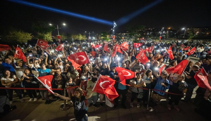 Konser sonunda etkinliğe katılanlara Konak Belediye Başkanı Nilüfer Çınarlı Mutlu’nun armağanı olarak Türk bayrakları dağıtıldı. 100. Yıl ve İzmir Marşları eşliğinde ellerindeki bayrakları coşkuyla sallayan Konaklılar unutulmaz görüntülere imza attı.