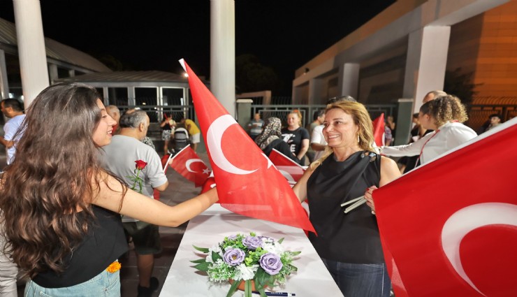 9 Eylül coşkusunu akşam saatlerinde fuara da taşıyan Konak Belediye Başkanı Nilüfer Çınarlı Mutlu, 93. İzmir Enternasyonal Fuarı’ndaki standda bir araya geldiği ziyaretçilere Türk bayrağı hediye etti