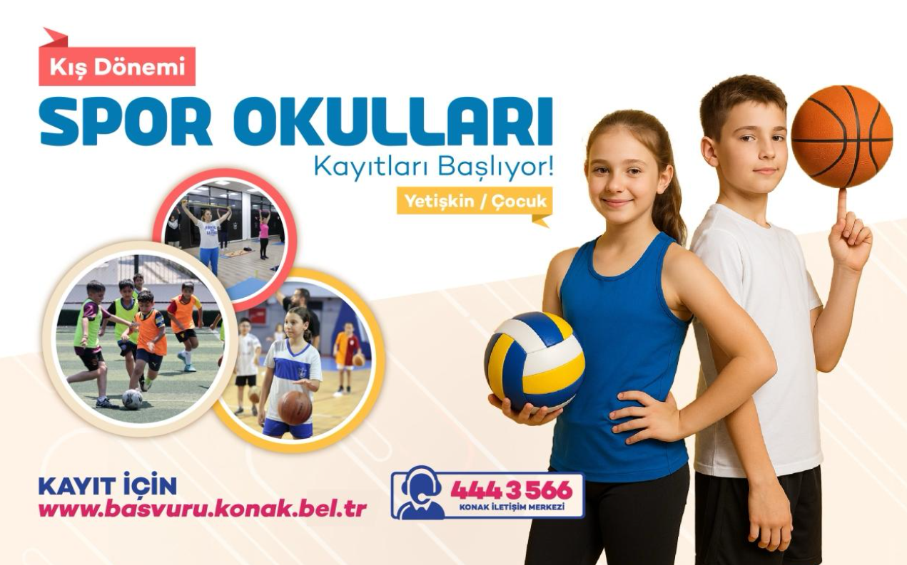 Konak Belediyesi Spor Okullarının kış dönemi, kentin hemen her noktasında Konaklıları sporun farklı branşlarıyla buluşturacak. 7-14 yaş grubu için futbol, voleybol ve basketbol kursları, Zafertepe Tarık Gencay Tesisleri ile Gültepe Atatürk Spor Salonunda yer alacak. 4-6 yaş grubunu kapsayan hareket eğitimi ise Gültepe Atatürk Spor Salonu, Beştepeler Sosyal Tesisleri, Zeytinlik ve Gültepe Semt Merkezlerinde minikleri sporla tanıştıracak. Kadınlar için Güzelyalı Spor Salonu, Zeytinlik Semt Merkezi, Hatay Semt Merkezi, Beştepeler Sosyal Tesisleri, Gültepe Semt Merkezi, Gültepe Atatürk Spor Salonu, Mehmet Ali Akman Semt Merkezi ve Toros Sosyal Tesisleri aerobik ve pilates grupları açılacak. Ayrıca Gültepe Atatürk Spor Salonunda kardiyo sınıfı yer alacak.