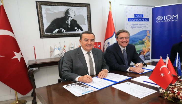 Konak Belediyesi’nin uygulayıcısı olduğu, Uluslararası Göç Örgütü işbirliği ve Konak Belediyesi Spor Kulübü Derneği ortaklığıyla yürütülecek Engel Tanımayanlar Projesi’nin protokolü, Konak Belediye Başkanı Abdül Batur ile IOM Acil Durum Koordinatörü David Savard tarafından imzalandı. Konak Belediyesi’nde yapılan imza törenine Konak Belediye Meclisi Üyesi ve Çocuk Hakları Komisyonu Üyesi Burhan Yılmaz, Konak Belediyesi Araştırma ve Geliştirme (ARGE) Müdürü Turan Ateş, Uluslararası Göç Örgütü İzmir Ofis Müdürü Pınar Genç Akçakaya, Ulusal İletişim Koordinatörü Gamze Adlı, Kıdemli İletişim Asistanı Cansın Gül Bakırcıoğlu, Kıdemli Proje Asistanları Ayşe Gül Kaplan ve Anastasia Sağlam ile Proje Asistanları Oya Erbaş ve Ayşenur Sarı da katıldı.