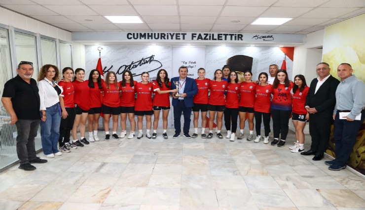 Türkiye Şampiyonası’nda büyük bir mücadele vererek İzmir’e ikincilikle dönen Konak Belediyesi U17 Kız Futbol Takımı, kupayı Başkan Batur’la birlikte kaldırdı.