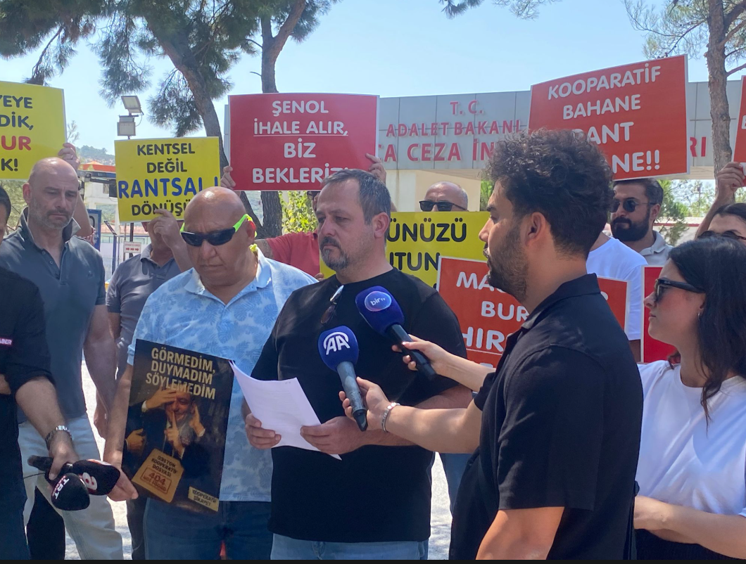 CEMRE YUVARLAK/EGELİ GAZETE- İzmir Büyükşehir Belediyesinin İZBETON şirketine yönelik yürütülen kooperatif ve kentsel dönüşüm soruşturması kapsamında, mağdur hak sahipleri yeniden sahaya çıktı. Yarım kalan kentsel dönüşüm projelerinde evlerine kavuşamayan yurttaşlar, bugün CHP İzmir İl Başkanı Şenol Aslanoğlu ile İzmir Büyükşehir Belediyesi önceki dönem Belediye Başkanı Tunç Soyer’in kooperatif soruşturması kapsamında tutuklu bulunduğu Buca Kırıklar Cezaevi önünde basın açıklaması yaptı. Kooperatif Mağdurları Birliği Başkanı Ali Alpyavuz önceki gün Özgür Özel’in Buca Cezaevi önünde yaptığı açıklamalara tepki göstererek, “Mağdurlar yerine başkanları dinlediniz” dedi.