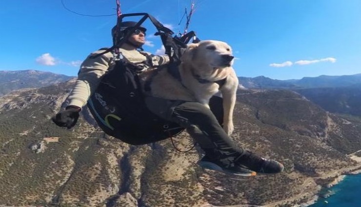 Muğla'nın Fethiye ilçesinde düzenlenen hava oyunları festivaline katılan Yasin Oflaz, köpeğiyle birlikte bin 700 metre yükseklikten yamaç paraşütü ile uçuş gerçekleştirdi.