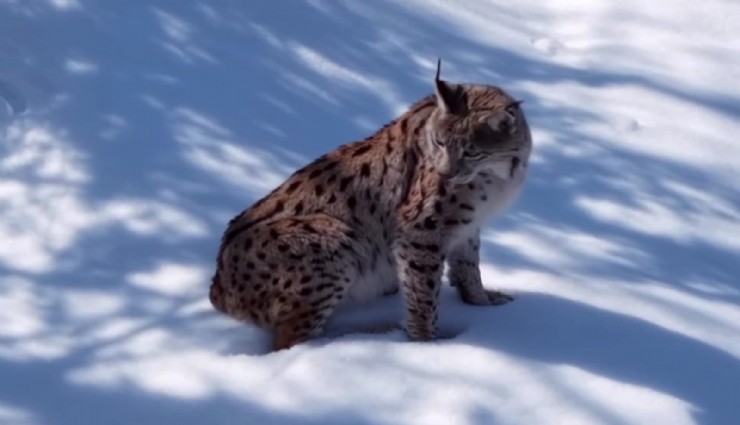 Uzun süre karlar üzerinde dinlenen vaşak daha sonra ormanlık alana doğru giderek gözden kayboldu.