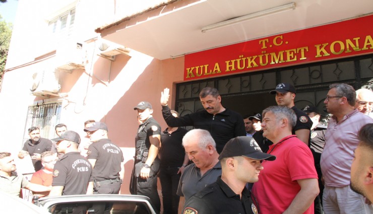 Edinilen bilgiye göre, CHP'li Kula Belediye Başkanı Hikmet Dönmez, belediyeyle anlaşma yapan özel bir firmanın yetkilileri M.U. ve H.D.'yi belediyeye çağırdı. M.U. ve H.D.'nin Kula Belediyesinin adını kullanarak esnaftan para topladığı ve esnafı dolandırdığı iddiasıyla Başkan Dönmez firmayla olan sözleşmesini feshetmek istedi. Bunun üzerine başlayan tartışmanın ardından firma yetkilileri M.U. ve H.D., Başkan Dönmez'in şoförü M.O.A. ve koruması R.G. tarafından darp edilerek belediyeden dışarı çıkarıldı. Darp edilen M.U. ve H.D., Başkan Dönmez'in makam odasında darp edildiklerini iddia ederek polise başvurdu. Şikayet üzerine Başkan Dönmez ile şoför M.O.A. ve koruma R.G. gözaltına alındı. Kula İlçe Emniyet Müdürlüğündeki ifadelerinin ardından mahkemeye sevk edilen M.O.A. ve R.G. "Yağma suçundan" tutuklanarak cezaevine gönderildi.