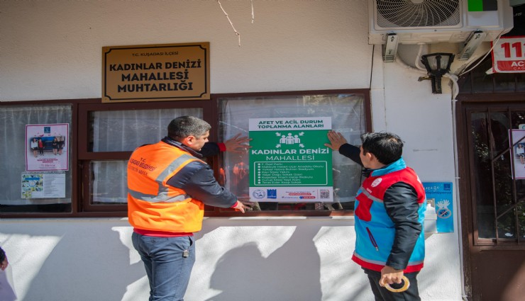 Kuşadası'nda afet toplanma alanlarıyla ilgili afişli bilgilendirme