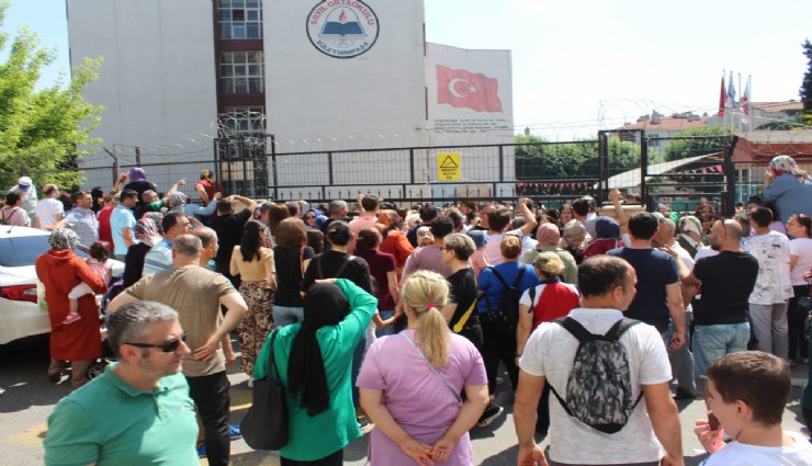 İzmir'de öğrenciler aileleri ile birlikte sabahın erken saatlerinde LGS'ye girecekleri okullara geldi. Okul girişinde bekleyen öğrenciler, tek sıra olarak sınav olacakları sınıflara alındı.