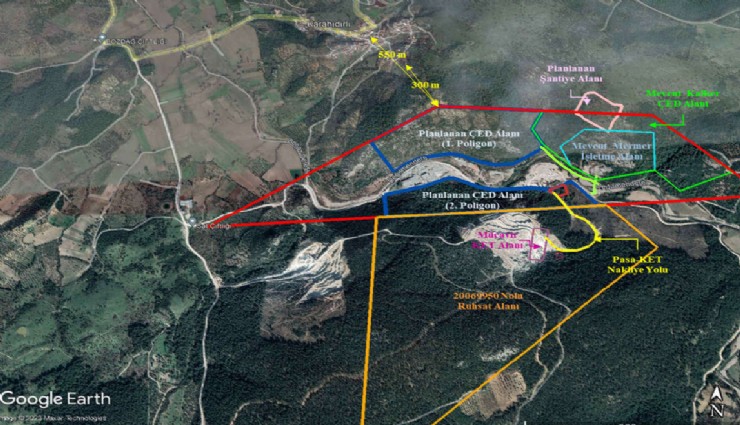 Proje tanıtım dosyasına göre şirket, 20,40 hektarlık ve 12,71 hektar büyüklüğünde iki ayrı sahayı mermer ocağı sahasına dahil etmeyi planlıyor.