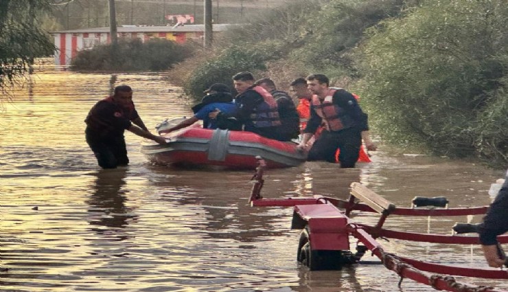 Manavgat'taki su baskınlarında mahsur kalan vatandaşlar botla kurtarıldı