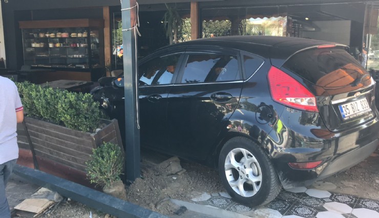 Kaza, 15.30 sıralarınsa 19 Mayıs Bulvarı'nda meydana geldi. Öznur A. idaresindeki 35 BIZ 833 plakalı otomobiliyle kavşağı döndüğü sırada direksiyon hakimiyetini kaybetti. Savrulan araç kavşağın köşesinde bulunan kafeye daldı. Müşteriler panikle kaçmaya başlarken o sırada kafede kira sözleşmesi yapan ev sahibi Mustafa K. ile kiracısı Melike K. aracın çarpmasıyla yaralandı. Haber verilmesi üzerine bölgeye sağlık ekipleri sevk edildi. Olay yerine gelen ekipler tarafından hastaneye kaldırılan 2 yaralının sağlık durumlarının iyi olduğu öğrenilirken araç sürücüsü Öznur A. şoka girdi. Kazayla ilgili soruşturma başlatıldı.