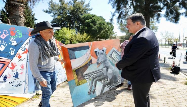 Karşıyaka Belediye Başkanı Dr. Cemil Tugay, gönüllü çalıştığı deprem bölgesindeki izlenimlerini Bostanlı’da bir mural çalışması ile anlatarak kente armağan eden Meksikalı Roberto Marquez’i ziyaret etti.