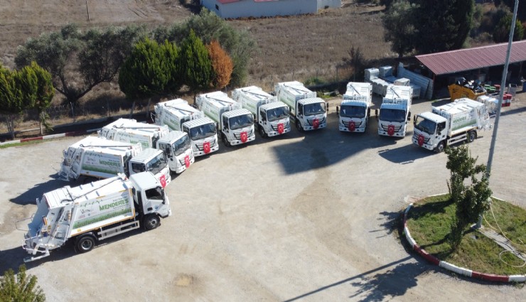 Menderes Belediyesi'nin araç filosuna kazandırdığı 10 adet yeni çöp kamyonu hizmete başladı.
