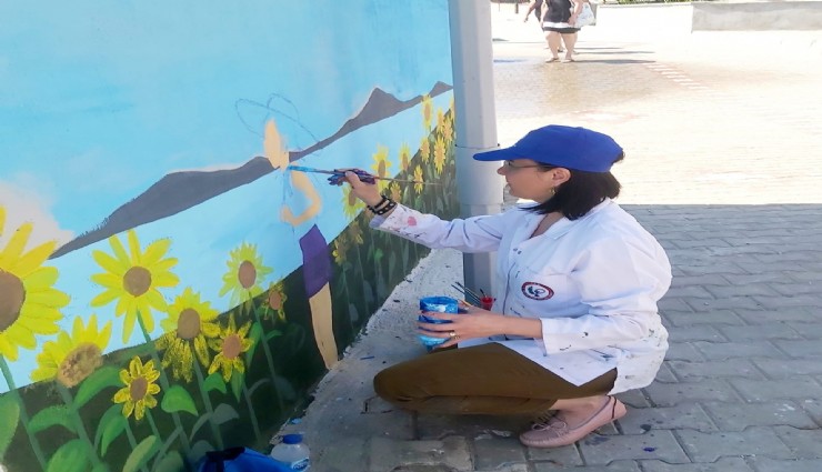boyama çalışmaları dikkat çekiyor. Sanatsal çalışmalarla hem park duvarları hem de
