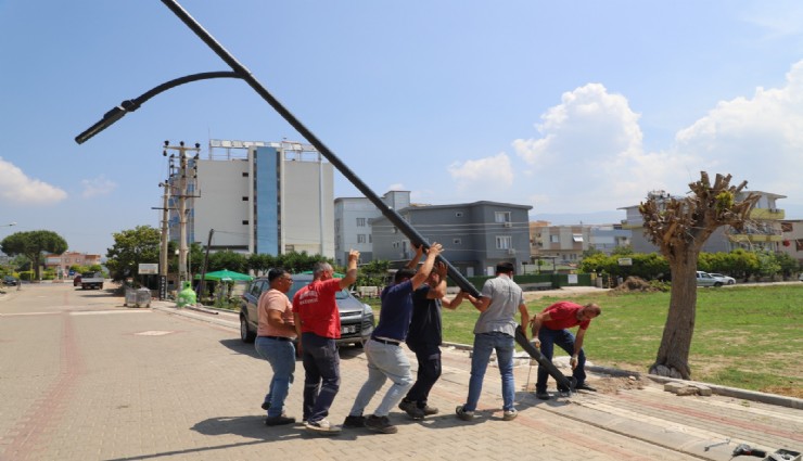 Menderes’in sahil bölgesine 27 adet yeni aydınlatma direği takıldı.