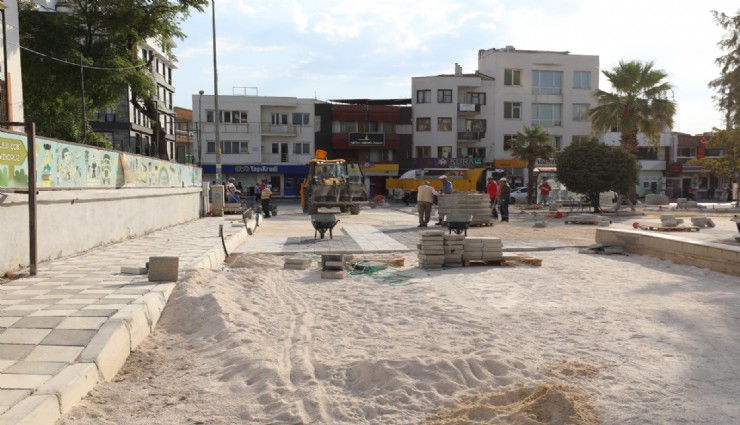 Menderes meydan ve kaldırım düzenleme çalışmaları hız kazandı.
