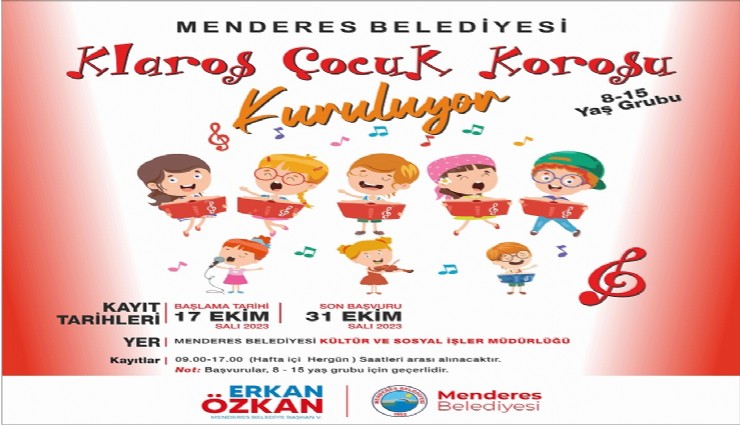 Menderes Belediyesi tarafından kurulacak çocuk korosu için kayıtlar başladı. Koroya katılmak isteyenler 31 Ekim tarihine kadar başvuru yapabilecekler.