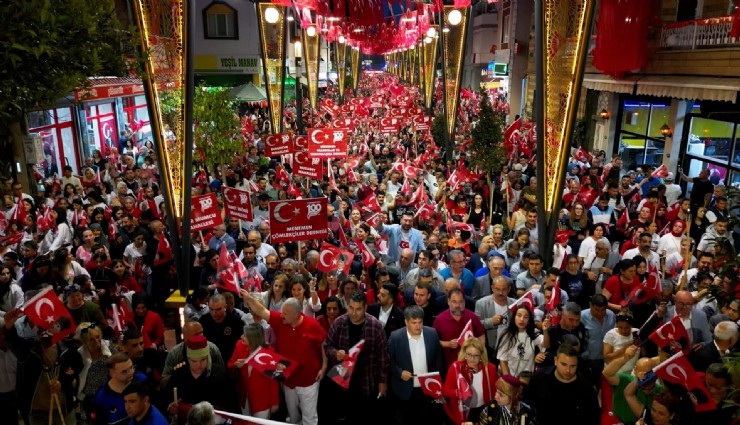Cumhuriyet Yürüyüşü gerçekleştirildi. On binlerce Menemenli ellerindeki Türk bayraklarıyla kortej