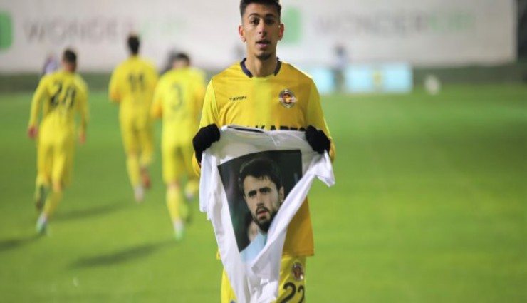 Menemensporlu futbolcular, Bandırmaspor karşısında attıkları golün ardından trafik kazasında hayatını kaybeden Konyasporlu futbolcu Ahmet Çalık'ı, fotoğrafının basılı olduğu tişört ile andı.