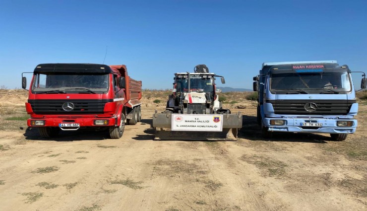 Manisa'nın Şehzadeler ilçesinde mera arazisinden izinsiz bir şekilde toprak aldıkları tespit edilen 3 şüpheli şahıs jandarma ekipleri tarafından gözaltına alındı. Şüphelilerle birlikte ele geçirilen 2 kamyon ve bir adet kepçe de yediemin otoparkına çekildi.
