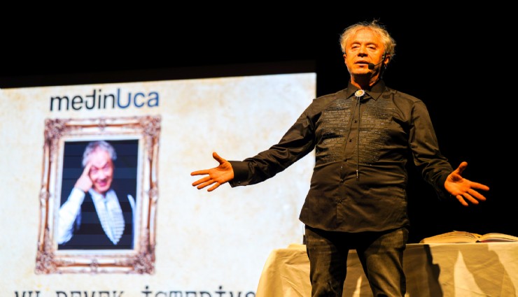 Gaziemir Belediyesi’nin kültür sanat etkinlikleri kapsamında Metin Uca, Gaziemirli seyirciyle buluştu. Atatürk Kültür Merkezi’nde sahne alan Uca, “Bunu mu Demek İstedim?” isimli tarihi komedi oyununu sahneledi. Prof. Dr. Özlem Kumrular’ın yazdığı eseri oyunlaştırıp sahneye taşıyan Uca, seyircileri tarihte hiç bilmedikleri, hiç duymadıkları ayrıntılarla çok eğlenceli bir yolculuğa çıkardı. Tarihteki ilgi çekici hikâyeleri kendine özgü eğlenceli üslubuyla anlatan Uca, tarihi olaylarla günümüzde yaşananları da karşılaştırıyor. Hiçbir yerde anlatılmayan tarihi öykülerle seyirciyi kahkahaya boğan Uca, ülkemizin içinde bulunduğu sosyal ve ekonomik koşulları da eleştirel bir dille ele alıyor. Salonu dolduran Gaziemirliler, oyun sonunda Metin Uca’yı ayakta alkışladı.