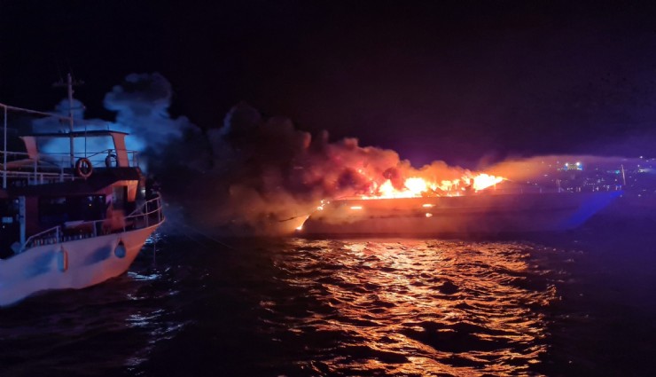 O esnada büyüyen yangın, tüm tekneyi sardı. Alev alev yanan yat için çok sayıda itfaiye ekibi ile Sahil Güvenlik ve Kıyı Emniyeti ekipleri geldi. Ekipler alev alev yanan yatı hem denizden hem de iskeleden söndürmeye çalıştı. Sert rüzgar, söndürme çalışmalarını zorlaştırdı.