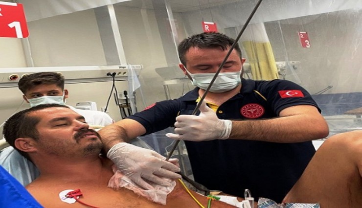 İzmir’in Karaburun ilçesinde hobi amaçlı balık avlamaya giden 33 yaşındaki Oğuzhan Sonugür, kazara elindeki zıpkını kalbine sapladı. Bir süre denizde kaldıktan sonra arkadaşlarının yardımıyla kıyıya çıkarılan Sonugür, 112 Acil Servis ekipleri tarafından DEÜ Araştırma Uygulama Hastanesi acil servisine kaldırıldı. Sonugür'e ilk müdahaleyi yapan acil servis doktorları, çekilen grafide zıpkının 21 santimetre içeriye girdiğini belirledi.