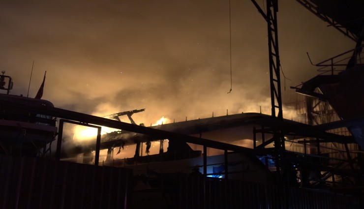 Yangın, Fethiye ilçesi Karagözler Mahallesi'nde bulunan tersanede meydana geldi. Edinilen bilgiye göre tersanede bulunan ahşap teknede, henüz bilinmeyen bir nedenle yangın çıktı. Alev kısa sürede tüm tekneyi sardı. Yangını fark eden tersane çalışanları durumu 112 Acil Çağrı Merkezi'ne bildirdi. İhbar üzerine bölgeye çok sayıda itfaiye ve Fethiye Orman İşletme Müdürlüğü'ne bağlı yangın söndürme ekipleri sevk edildi. Kısa sürede bölgeye gelen ekipler, yangına müdahale etti. Alevlerin diğer teknelere sıçramaması için ekipler yoğun çaba sarf ederken, bölgede söndürme ve soğutma çalışmalarının devam ettiği öğrenildi.