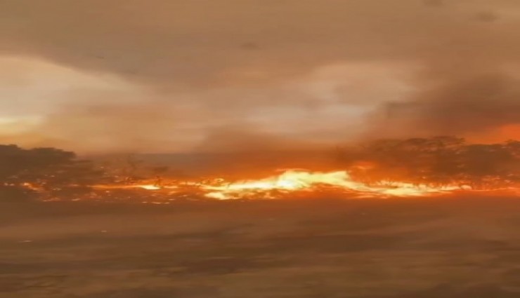 Görüntülerde, yangına müdahale etmek için giden gönüllü ekibin alevlerinde arasında kalması yer alıyor.