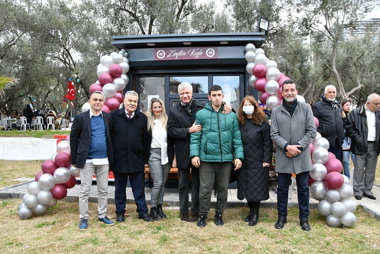 Narlıdere Belediyesi’nin bünyesindeki S.S. Narlıdere Kadın Girişimi Üretim Ve İşletme Kooperatifi’nin altıncı işletmesi olan Zeytin Cafe’yi çocukları yüzde 96 engelli olan Türkkolu ailesi işletiyor. Anne Elif Türkkolu ve Berker, müşterilere en iyi hizmeti sunmak için canla başla çalışıyor.