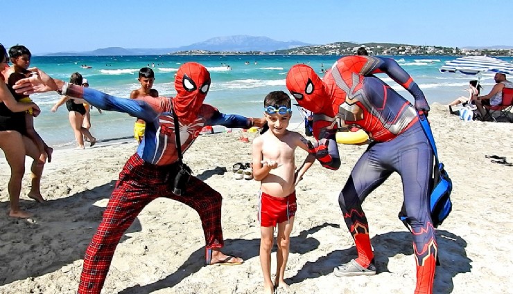 Çeşme'ye de gelen fenomen Örümcek Adamlar, ünlü Ilıca Plajı'nı da ziyaret ettiler. Ilıca Plajı'nda tatilcilerin ve çocukların büyük ilgisi ile karşılaşırken, birçok çocuk ve tatilci ile fotoğraf da çekildiler.