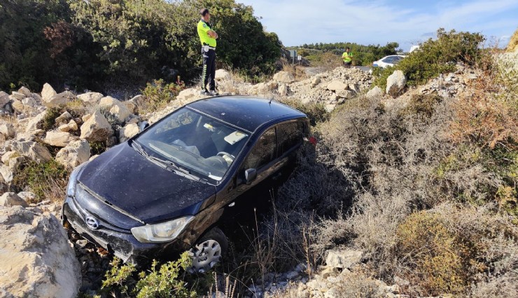 Aydın'ın Kuşadası ilçesinde, iddiaya göre aşırı hız nedeniyle sürücüsünün direksiyon hakimiyetini kaybettiği otomobil, kontrolden çıkarak yol kenarına savruldu. Bir süre sürüklenen aracın uçurumdan düşmesini çarparak durduğu kayalıklar engellerken, kazada sürücü yaralandı.