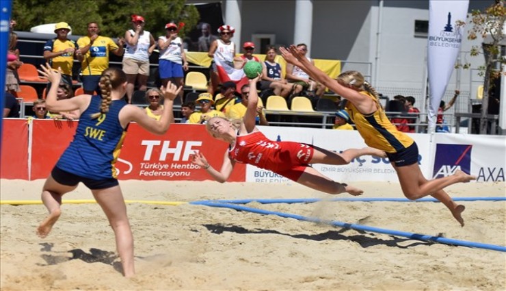 İzmir Büyükşehir Belediyesi'nin plaj sporlarının merkezi olarak hizmete sunduğu İnciraltı Spor Tesisleri'nde düzenlenen EHF Avrupa U17 Plaj Hentbolu Şampiyonası'nda heyecan tüm hızıyla devam ediyor. Avrupa Hentbol Federasyonu, Türkiye Hentbol Federasyonu ve İzmir Büyükşehir Belediyesi işbirliği ile düzenlenen şampiyonanın ikinci gününde millilerimiz, erkeklerde Ukrayna'ya 2-1 yenildi.