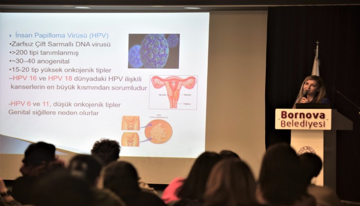 Eve yaşlı bakımından diyete, ağız ve diş taramasından fizyoterapiye sağlık alanında pek çok hizmet veren Bornova Belediyesi, Rahim ağzı kanserini önlemede HPV aşısının önemine düzenlediği seminer ve fotoğraf sergisi dikkat çekti. Dr. Mürşide Tuncel Başoğlu yoğun ilgi gören etkinlikte zamanında yapılacak aşı ile bu hastalıktan korunmanın mümkün olduğunu ve erken teşhisin önemini anlattı