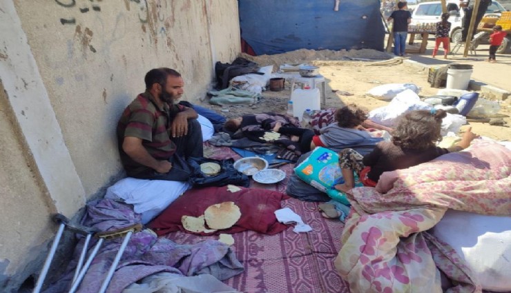 İsrail’in geniş çaplı kara harekatı öncesi Gazze Şeridi’nin güneyindeki Refah kentinin doğusunda yer alan mahallelere 6 Mayıs’ta tahliye emri vermesinin ardından binlerce kişi bölgeden göç etmeye başladı. Zorla yerinden edilen Filistinli aileler, Gazze Şeridi’nin merkezindeki Deyr El Balah kentinde yeni çadır kampları kurmaya başladı. Çok sayıda aile yer bulamadıkları için çadırlarını kaldırımlara kurarken, bir kısmı da boş arazilere yerleşti.