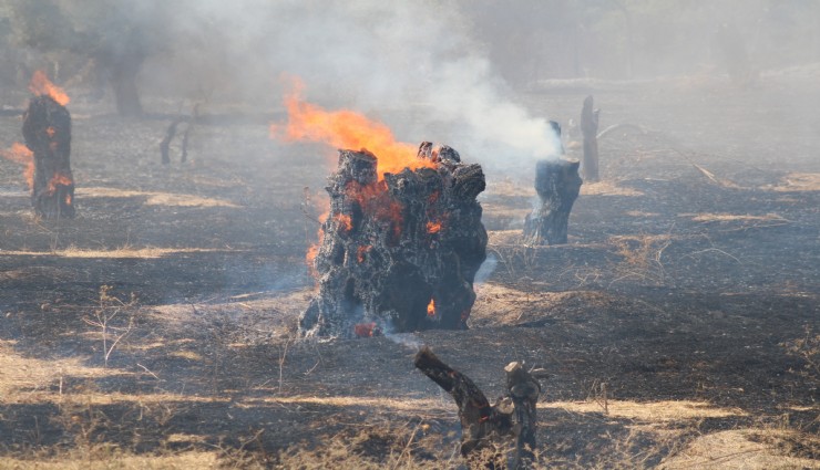 Aydın'ın Efeler ilçesindeki bir arazide çıkan ve rüzgarla geniş alana yayılarak bir hayvan çiftliğini tehdit eden yangın, ekiplerin yoğun çabası sonucunda kontrol altına alındı.