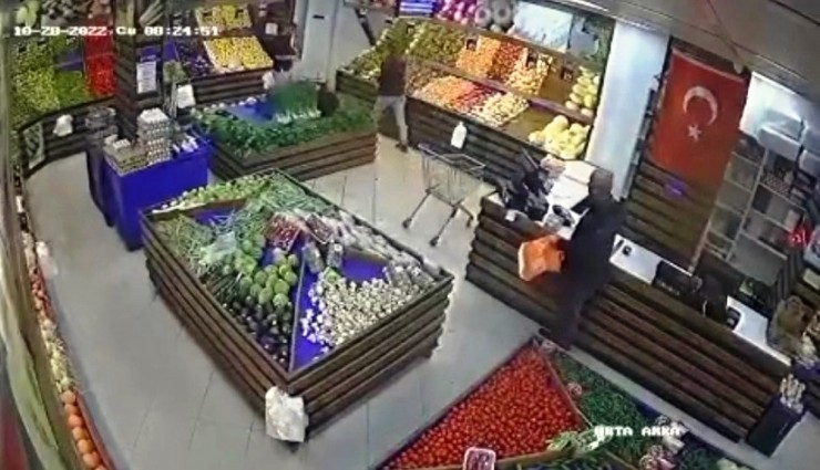 İzmir’de bir markete gidip “29 Ekim Cumhuriyet Bayramı için öğretmenlere yemek yapacağım” diyerek her market çalışanından çeşitli ürünleri torbaya koymasını isteyen şahıs, o sırada kasanın yanından bulunan sadaka kutusunu çaldı. O anlar, marketin güvenlik kamerasına yansıdı.