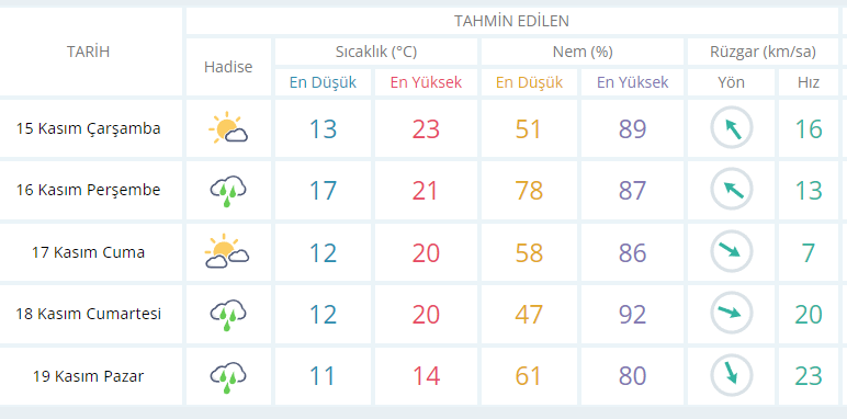 İzmir'in 5 günlük hava tahmin raporu: