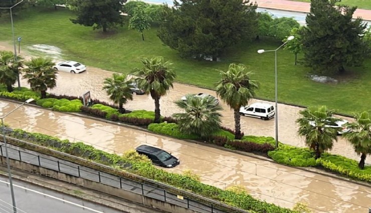 Samsun'u yine sel vurdu, caddeler göle dönüp kaldırımlar çöktü, araçlar sel suları içinde mahsur kaldı.
