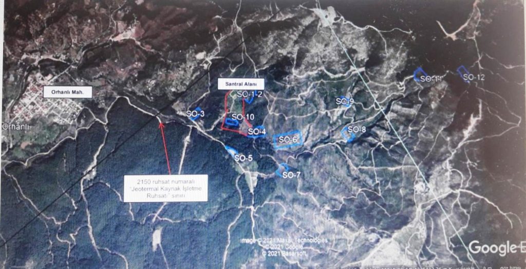 Yayınlanan ÇED raporunda ayrıca şu bililer de yer aldı: “Küçük Menderes Enerji Petrol Jeotermal Maden Elektrik Üretim Mühendislik A.Ş tarafından Seferihisar ve Menderes ilçeleri, Orhanlı ve Yeniköy Mahalleleri mevkiinde 37,5 MWe Jeotermal Enerji Santrali ve yardımcı kaynak Rüzgâr Enerji Santrali (3,6 MWe/1 Türbin), Güneş Enerji Santrali (2 MWe/3,65 ha)] Tesisleri projesi planlanmaktadır. Orhanlı Mahallesi mevkii 105 ada, 13, 14 ve 17 numaralı parsellerdeki tesinin toplam 51.332,23 metrekarelik alanda işletilmesi planlanmaktadır.”