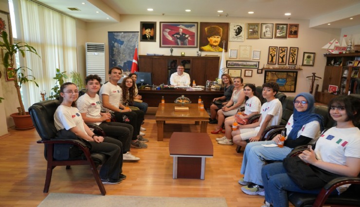 İtalya’daki programı başarı ile tamamlayan öğretmen ve öğrenci grubu Seferihisar Belediye Başkanı İsmail Yetişkin’i, destekleri için teşekkür etmek ve bilgilendirme yapmak için ziyaret ettiler. Başkan Yetişkin, ziyaretine gelen öğretmen ve öğrencilere, belediyenin yeni üretimine başladığı mandalina gazozu ikram etti.