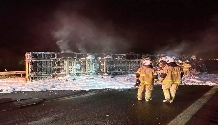 Öte yandan, kaza nedeniyle kapanan yolda uzun araç kuyruğu oluşurken, itfaiye ekiplerinin yanan tırda soğutma çalışmalarının sürdüğü öğrenildi. Kazayla ilgili geniş çaplı soruşturma başlatıldığı belirtildi.