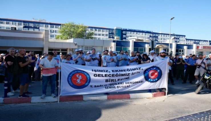 Türkiye Sağlık İşçileri Sendikası İzmir Şube üyesi işçiler, poliklinikler önünde bir araya gelerek ortalama 55-60 bin TL civarında olan alacaklarının bir an önce ödenmesini istedi.