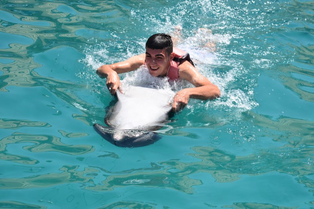 Selçuk Engellilerini Destekleme Derneği 19 Mayıs Atatürk’ü anma Gençlik ve Spor Bayramı kapsamında Down sendromlu ve Otizmli çocuklar ile gençleri yunuslarla buluşturdu. Gösteri sırasında çocukların yunuslara dokunurken yaşadıkları mutluluk gözlerinden okundu. Zaman zaman mutluluk çığlıkları da atan çocuklar doyasıya eğlendikleri bir gün geçirdi.