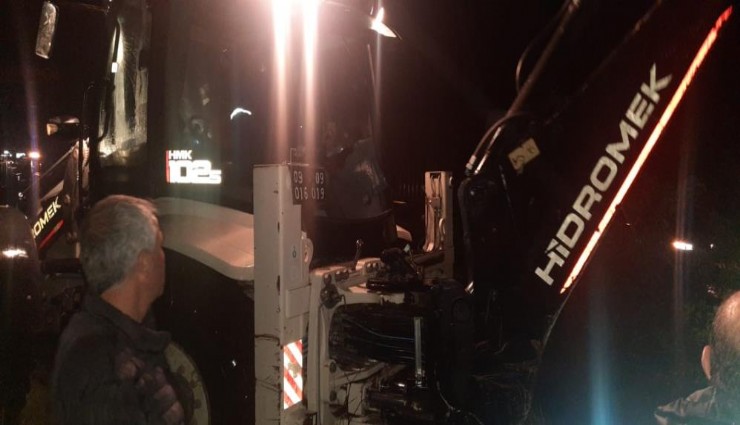 Söke’de sel suları yol kapattı, iki araç yol kenarında askıda kaldı